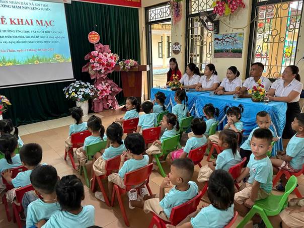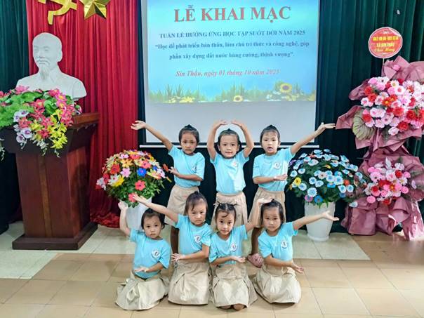 Thực hiện Kế hoạch số: 60/KH-UBND của UBND xã Sín Thầu về việc tổ chức Tuần lễ hưởng ứng học tập suốt đời năm 2025 trên địa bàn xã Sín Thầu. Ngày 01/10/2025, Trường Mầm non Leng Su Sìn long trọng tổ chức Lễ khai mạc Tuần lễ hưởng ứng học tập suốt đời năm 2025. Đến dự và chỉ đạo buổi lễ có Đ/c Lê Thu Hà - Bí thư Chi bộ, Hiệu trưởng nhà trường cùng các đ/c đại diện cho tập thể CB-GV-NV và các cháu học sinh của đơn vị nhà trường. Năm học 2025-2026 Trường Mầm non Leng Su Sìn phát động Tuần lễ hưởng ứng học tập suốt đời với chủ đề: "Học để phát triển bản thân, làm chủ tri thức và công nghệ, góp phần xây dựng đất nước hùng cường, thịnh vượng". Với mong muốn lan tỏa tinh thần "Học tập suốt đời" đến từng đồng chí CB-GV-NV và các cháu học sinh, để mỗi ngày học tập là một niềm hạnh phúc. Tại buổi lễ, cô giáo Lò Thị Thanh - Tổ trưởng chuyên môn tổ mẫu giáo đơn đại diện cho tập thể GV của nhà trường đã nhấn mạnh trong bài phát biểu hưởng ứng Tuần lễ học tập suốt đời: Tập thể GV trường MN Leng Su Sìn quyết tâm không ngừng tự học, tự bồi dưỡng để nâng cao trình độ chuyên môn, nghiệp vụ, kỹ năng sư phạm và năng lực ứng dụng công nghệ thông tin trong giảng dạy. Đổi mới phương pháp giáo dục, luôn thể hiện tinh thần cầu thị, ham học hỏi, khám phá, cảm nhận rằng "Học tập là một niềm vui". Bài phát biểu Hưởng ứng cũng chính là lời cam kết: Mỗi ngày đến trường chúng ta không chỉ dạy mà còn học; không chỉ gieo tri thức mà còn nuôi dưỡng tinh thần học tập cho thế hệ tương lai của đất nước. Một số hình ảnh diễn ra tại buổi lễ.